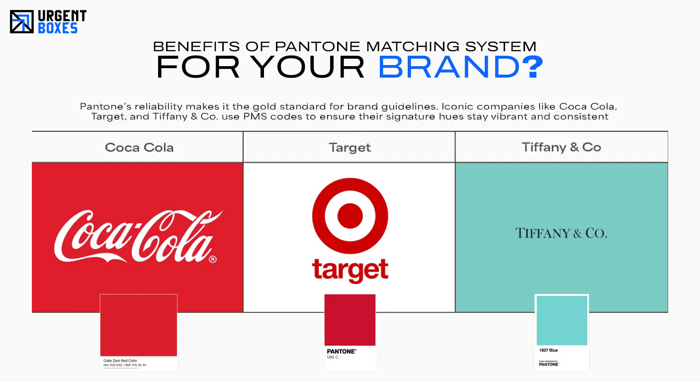 To achieve color perfection for your modern printing and packaging designs, the Pantone color matching system is all you need! Feel free to contact Urgent Boxes to discuss every detail of your Pantone color matching system. Our team will help you out with it all!