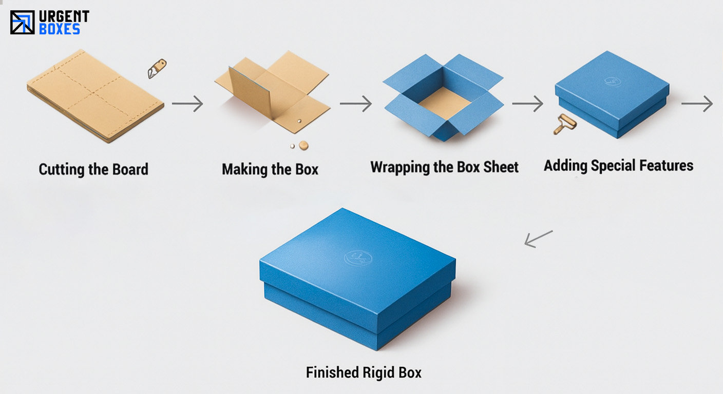 Start by looking for an ideal packaging supplier. Urgent Boxes will prove to be of great help if you are looking for high-quality rigid boxes at affordable rates. We offer you unlimited packaging benefits, design freedom and endless customization opportunities.